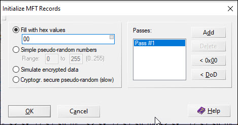 Initialize MFT Records: On NTFS volumes, WinHex can clear all currently unused $MFT (Master File Table) FILE records, which may contain metadata (e.g. names) and even contents of previously existing files. Available in WinHex only, not in X-Ways Forensics.