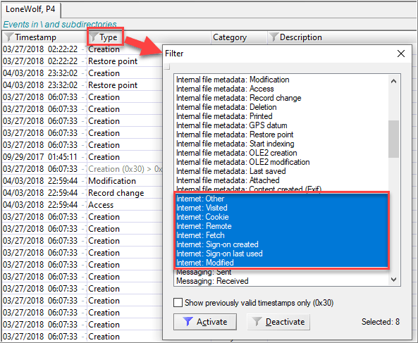 The event list’s super power is the ability to sort and filter various timestamps associated with certain events. This may be helpful when reviewing other information included in a XWF case.