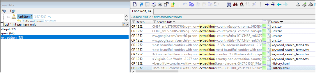 As demonstrated, data extracted may be reviewed in an event list, the HTML child object, or the TSV child object. With some practical application of filters, Simultaneous Search, and some Excel know-how, reporting on Internet activity is very manageable with XWF.