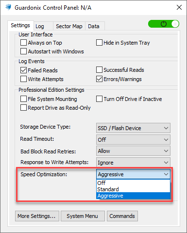 With Guardonix Professional, speed optimization settings may be selected for SSD media. Aggressive may be an appropriate option for healthy drives if you can afford the CPU load.