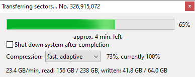 Casual: I initiated imaging (fast, adaptive) with X-Ways Forensics 20.6 SR-1 and let the process run for about 5 minutes, then aborted it. I was curious how hot the NVMe SSDs would get, so only those drives were imaged completely.