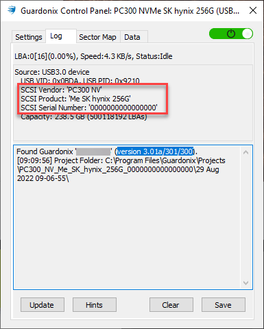 A demonstration: The Guardonix Professional reported zeros for the serial number of a Plugable USB to NVMe enclosure with an RTL9210 chip.