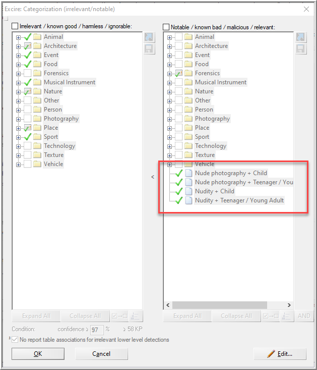 I was interested in leveraging categories together by filtering for objects identified in a photo that may help with context. XWF already applies this technique with Excire to assist with child abuse investigations. Magnet.AI has a dedicated category that purpose.