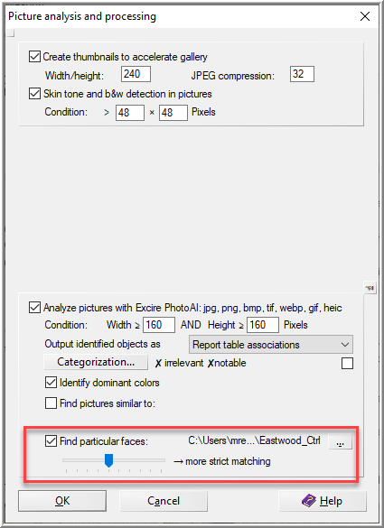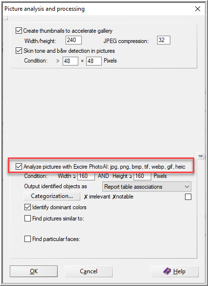 Picture Analysis options for Excire.