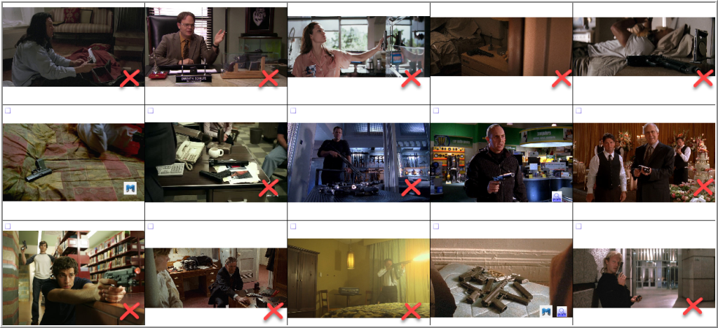 Of the 38 images from movies or television series that contains a firearm collected from IMFDb.com, 13 (34%) were appropriately tagged as “Possible weapons” (5) or “Possible Militants” (8) in AXIOM, and 18 (47%) were appropriately categorized as a “Weapon” in XWF.