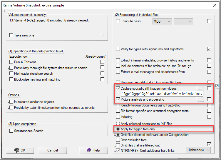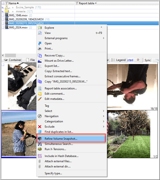 To save time, it may not be appropriate to activate the option to Capture sporadic still images from video with the initial refinement of the volume snapshot for an entire image. Instead, consider activating this option on a specific video (or several) discovered during an examination.