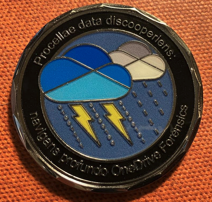 Brian Maloney had a really cool OneDriveExplorer challenge coin idea in anticipation for Community Learning Day at DFIRCON and I helped him digitize his original art. This is the result.