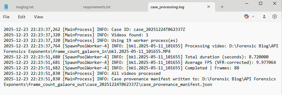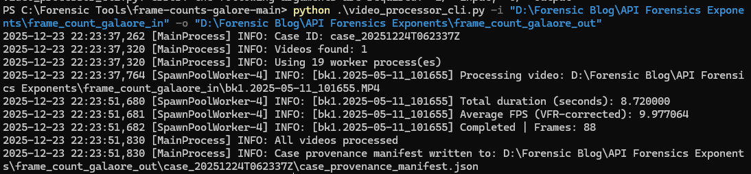 In Season 3, Episode 2 of the Digital Forensics Now Podcast, Brignoni explains with Heather Charpentier that the script extracts and forensically documents every frame, with the goal of accurately counting all applicable frames while accounting for variable frame rate (VFR).